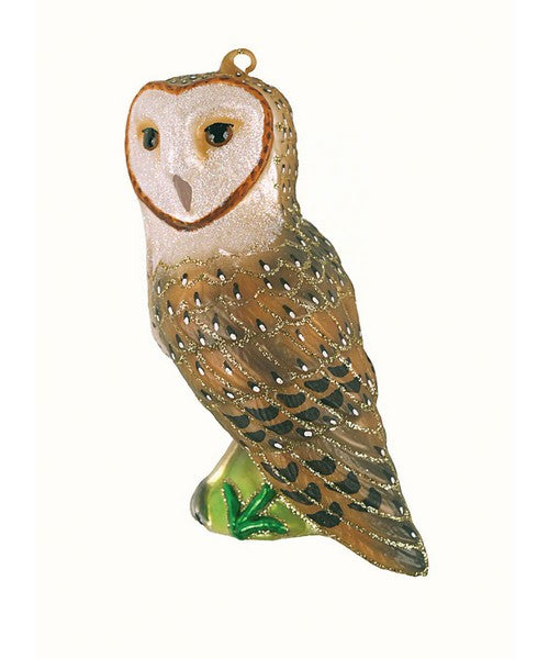 Barn Owl Ornament. Handblown and hand painted glass ornament.