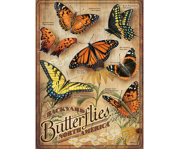 A lot of orange and Black on these winged creatures, but they are not all Monarchs. This 500 piece Backyard Butterflies puzzle by artist Rosemary Millette is perfect for identifying popular butterflies of North America.