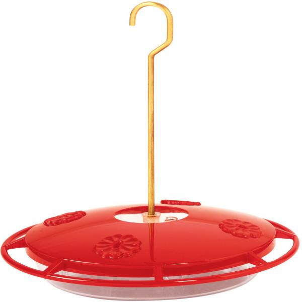 When customers have concerns about hard-to-clean nectar feeders, show them Aspects' HummZinger line. The bright red cover attracts hummers from a distance and removes easily so the bowl can be cleaned quickly and thoroughly. Polycarbonate construction. The built-in ant moat blocks crawling insects and the patented Nectar-Guard tips on the feeding ports prevent bees, wasps, and other flying insects from feeding at the ports. These two patented features combine to make the Ultra the most insect-proof feeder on the market. Nectar Guard tips included. 4 feeding ports. 12 oz capacity. Hang or post mount. Raised flowers divert rain. Drip and leak proof. Hanging rod opening will accommodate any pole system.