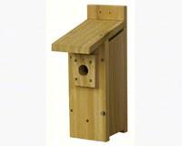 A large house designed to be mounted to a post and attract house wrens, Black-capped chickadees, tufted titmice and white-breasted nuthatches. Entrance is 1.25 inch to deter house sparrows.