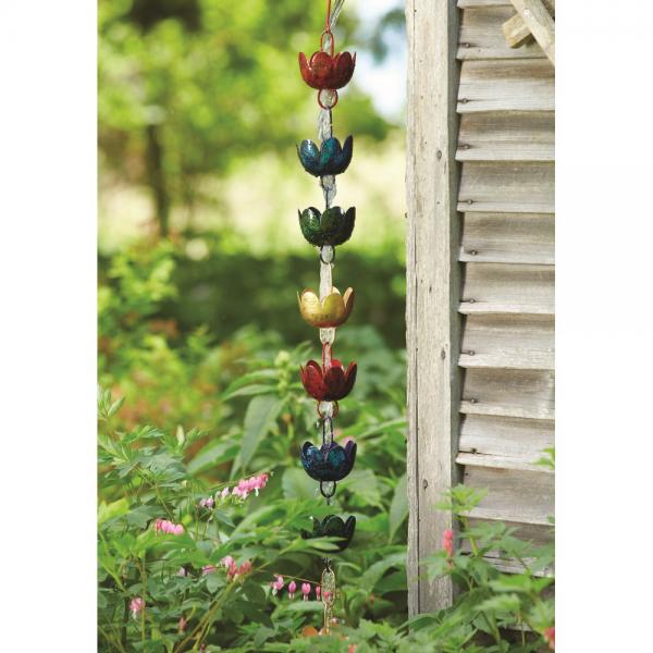 Rain chains are meant to hang from a gutter spout so you can watch the rain trickle over and through them. They can also be used as an outdoor decoration. Made of steel with a powder coated finish, then sealed with a clear poly coating. It is recommended that additional clear coat be applied from time to time to preserve the finish.