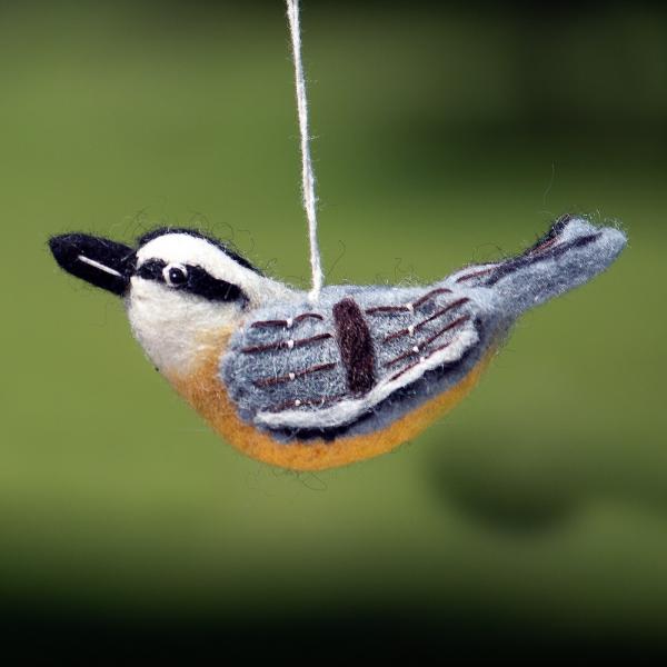 Exceptional felted wool workmanship makes our highly representational backyard bird ornaments something very special. Educational, decorative and entertaining for birding enthusiasts as well as everyday admirers of nature's most amazing creatures, birds! Lovingly soft to the touch because they are made with a fine merino wool. Each bird has a hanging string attached to its back, and dangles from an attractive hangtag that has an individual barcode for easy in-store sales. Handmade by skilled artisans working in a fair trade production center in Kathmandu, Nepal.