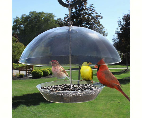 Dome feeder with plenty of feeding options. Adjustable dome helps protect against squirrels