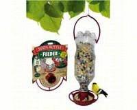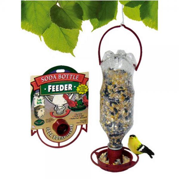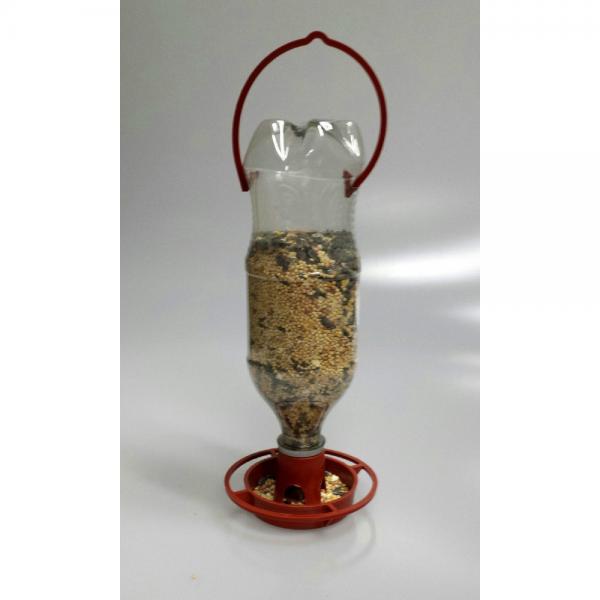 Soda Bottle Value feeder consists of a feeding tray that twists onto an empty plastic soda bottle and a hanger.